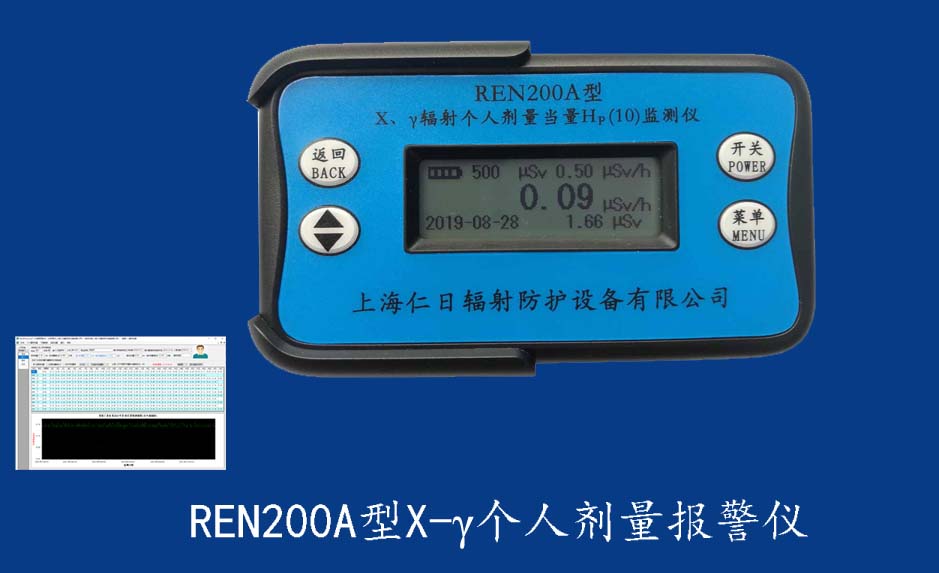 REN200 個人輻射監測儀 REN200型X、γ個人劑量報警儀(又叫X、γ輻射個人劑量當量HP(10)監測儀)內置高靈敏度蓋格計數管為探測器,主要用來監測各種放射性工作場所的X、γ以及硬β射線的輻射,具有響應快,測量范圍寬的特點。能顯示工作場所的劑量當量率和累積劑量,更換電池時,日期及累積數據能永久保存。可選配RenRiPersonal個人劑量管理軟件,該軟件可存儲多個人的歷史數據,能記錄日累積、月累積、年累積、輻照時長、計算平均劑量率、扣除或不扣除本底輻射,且以文字和圖譜的方式展現數據。廣泛應用于核電站、加速器、鋼鐵、化工、同位素應用、醫院、工業X、γ無損探傷、放射醫療、鈷源治療、γ輻照、放射性實驗室、核設施周圍環境監測